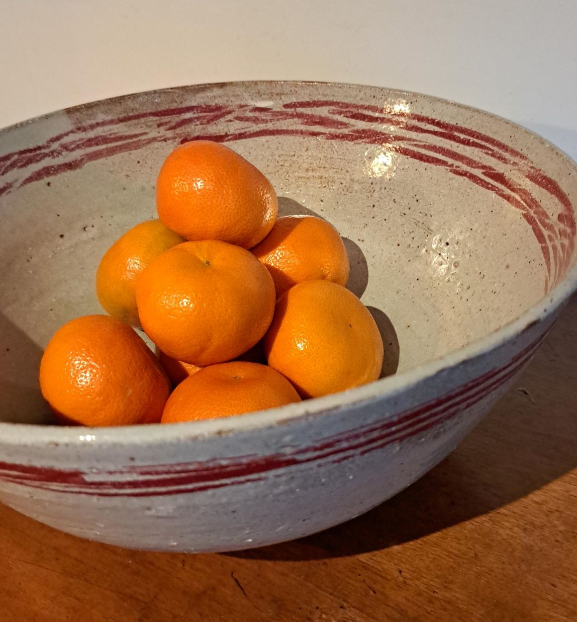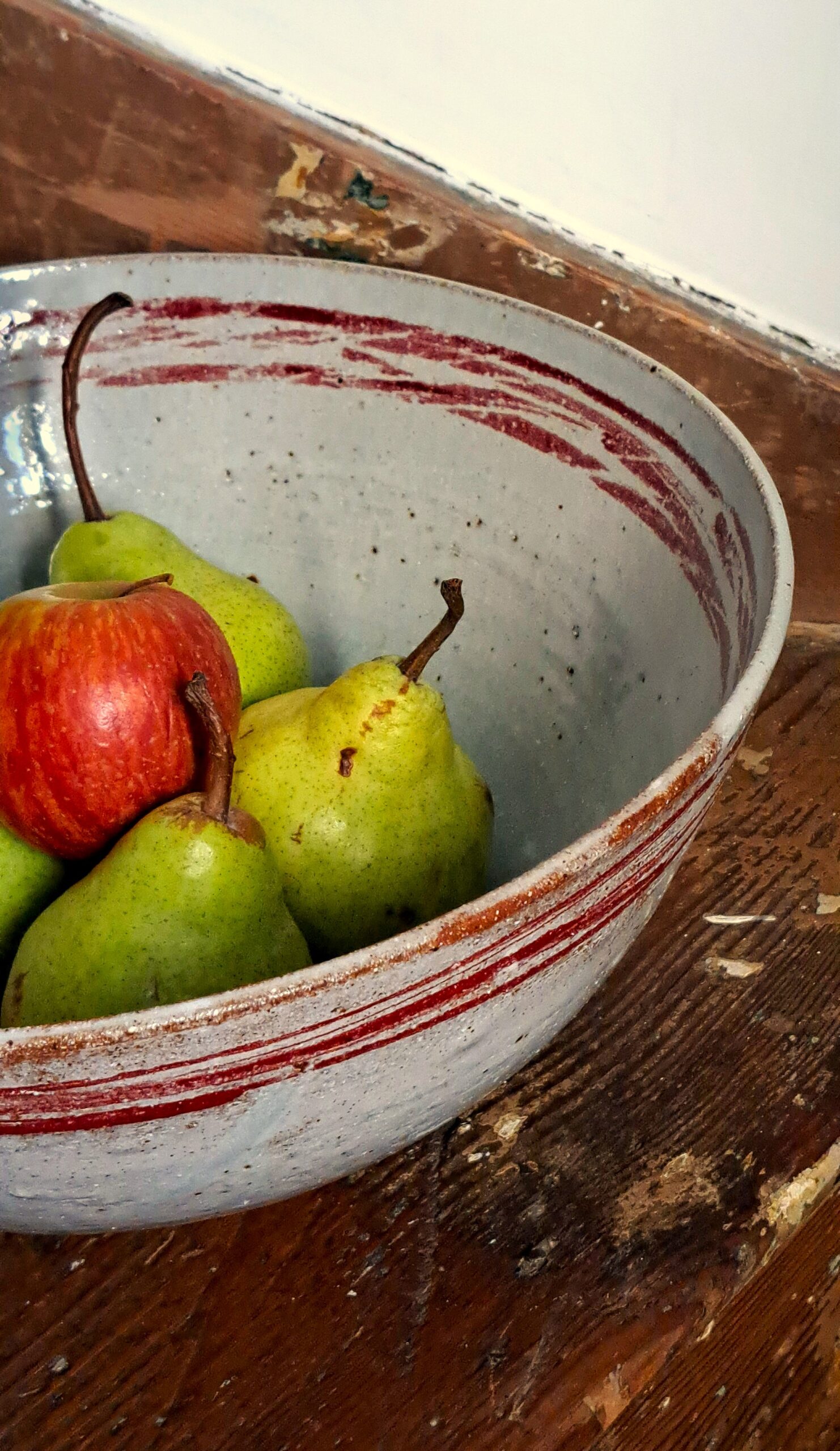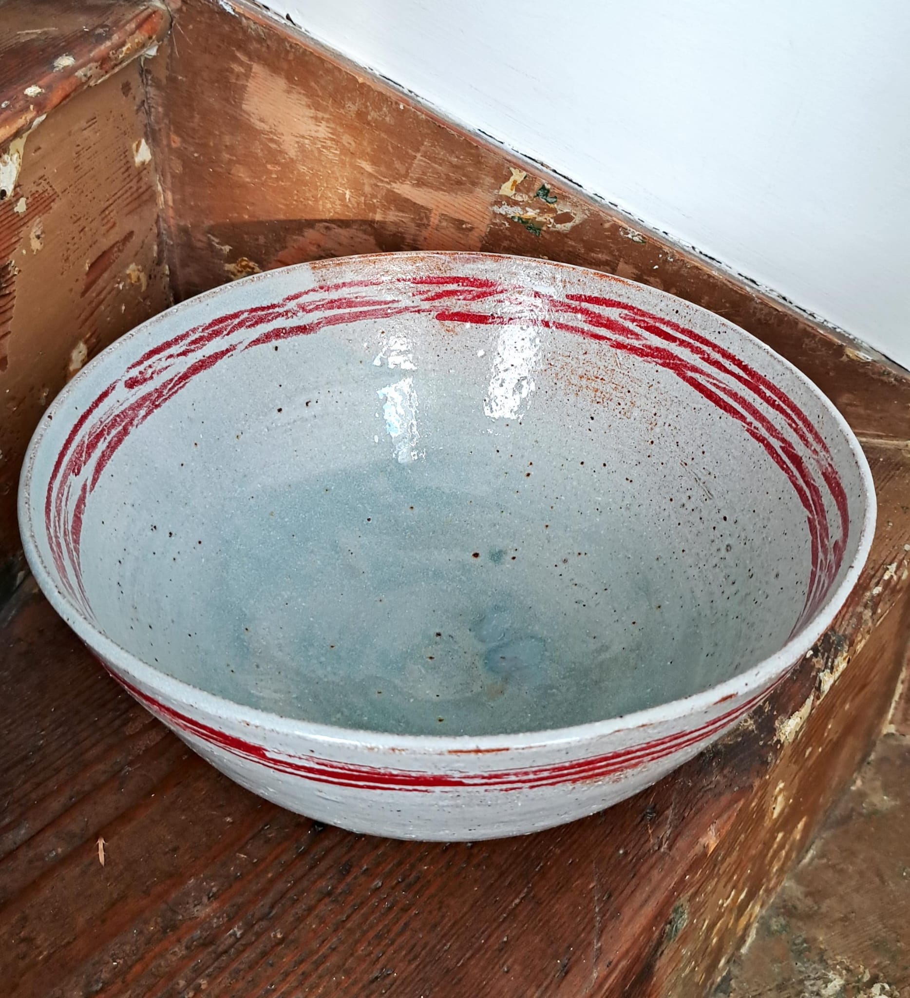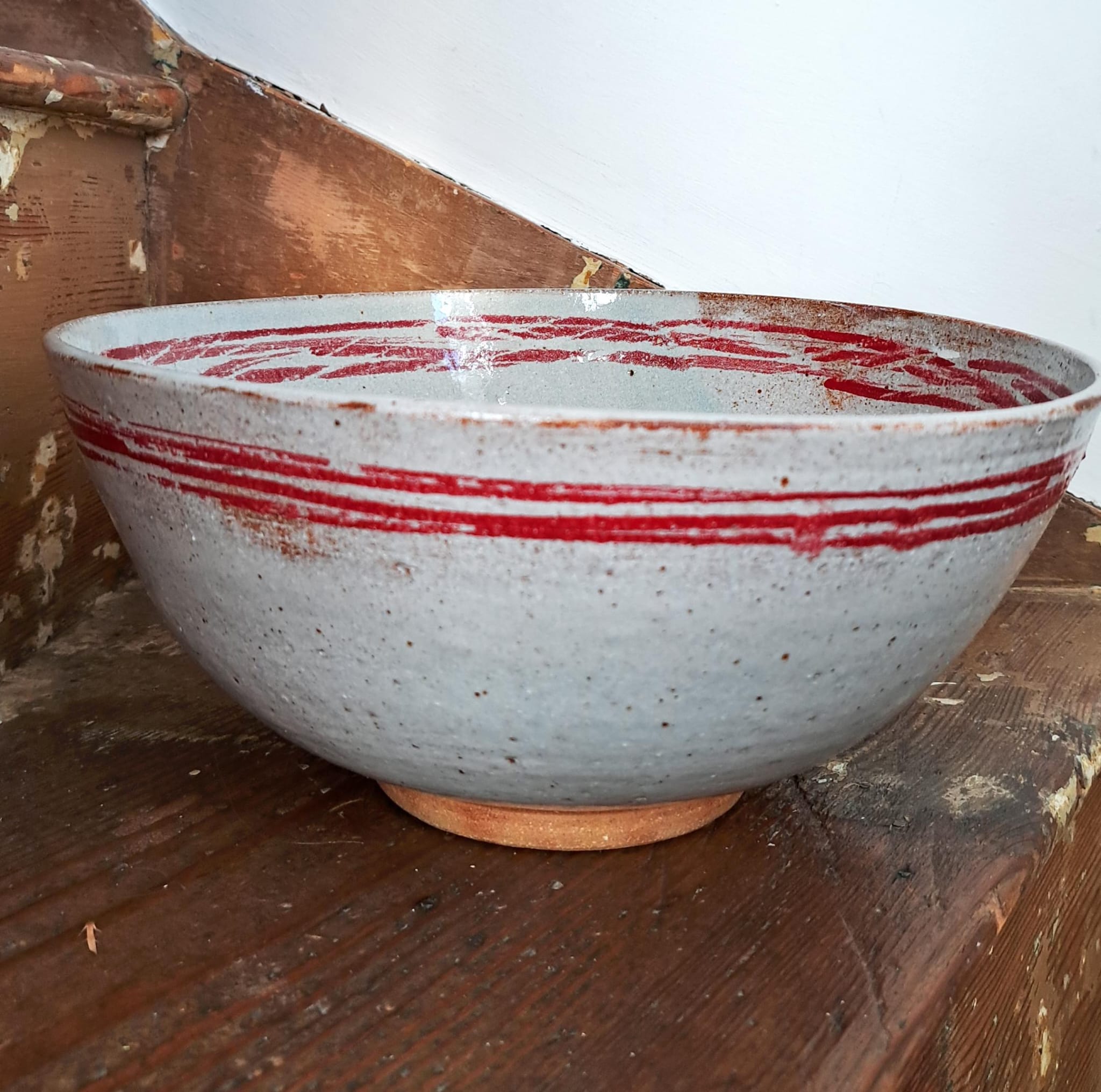 A beautiful hand-thrown bowl, made with iron-rich clay to give each piece its unique slightly speckled effect & decorated in maroon pigment. Use for serving salads or vegetables, or fill it with your favourite fruit for an elegant addition to your kitchen.